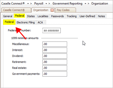 If the Federal ID number is not correct, make your changes to the Federal Withholding Tax (76-00) pay code in the Payroll application. (To learn how to look up the Federal pay code and where the Federal ID number is located, see the help topic titled First, Verify the Federal ID Number.) Next, run Convert Year-end Tax Information to update the Federal ID in Government Reporting.
