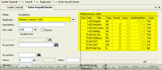 4. Press Enter to display the employee's pay codes.