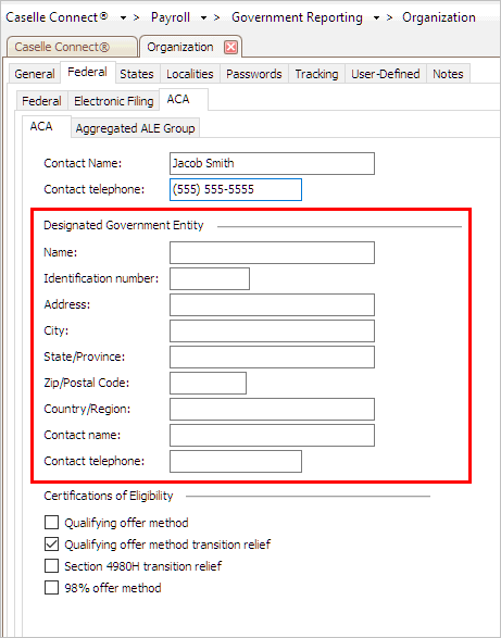 The ACA contact information and default settings are set up. The next step is to review the ACA information on each employee record to make sure it’s correct.