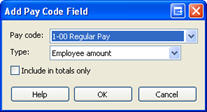 2. Use the options in the Add Pay Code Field to select the pay code name and define the displayed value.
