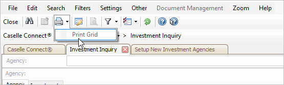 To print the transactions on the Investment Inquiry screen, click Print (CTRL+P).