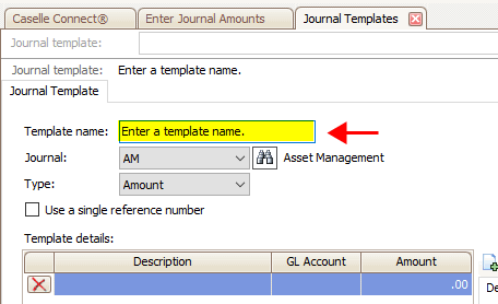 If the journal template type is amount, enter the default value as an amount (#,###.00).