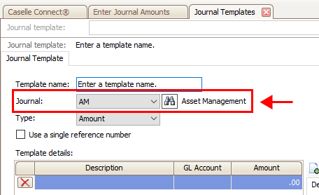 You can create a journal template that calculates an amount or percentage. Use Amount to enter the default amount to display in the Amount field. Use Percentage to enter the default percentage in the Percentage field. If the journal template uses an amount, the Amount field is displayed on the template details form. On the other hand, if the journal template uses a percentage, Connect will replace the Amount field on the template details from with the Percentage field.