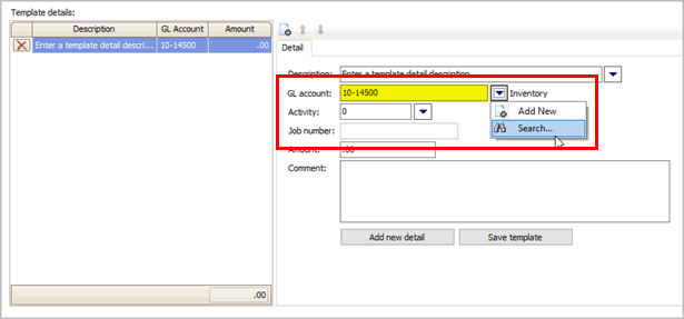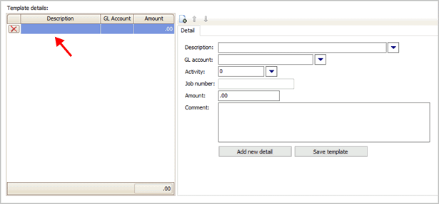 Note: The template detail total must equal zero before the template is saved.