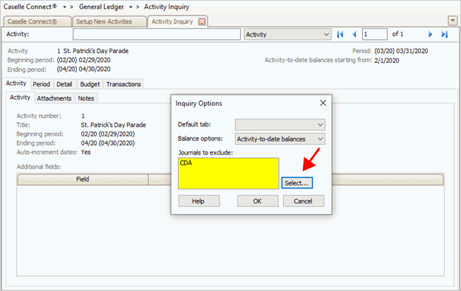 To view activity for COVID-19, use Activity Inquiry in Connect General Ledger. An invoice from Accounts Payable will attach the COVID-19 activity to the invoice and the check. The COVID-19 activity code will be included in the AP and CDA journals. Activity Inquiry will show the AP and CDA journals, which would appear to double the COVID-19 activity amount in Activity Inquiry.