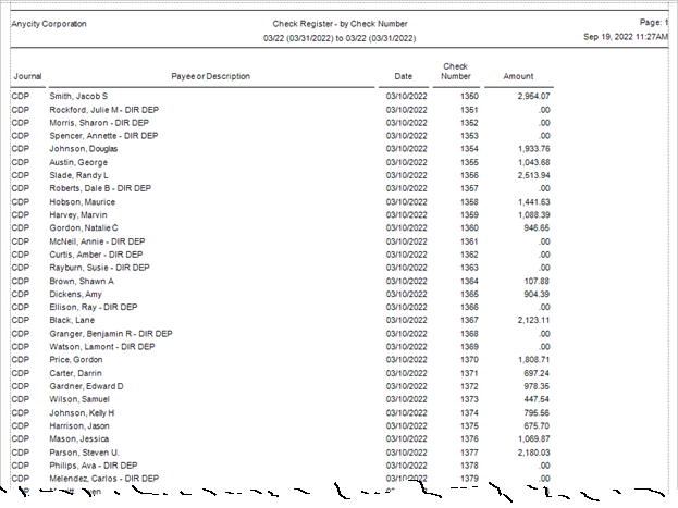 Printing Check Register