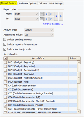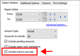 Include journals that are not set up as an active journal. To learn more, see How do I activate/deactivate a journal code?