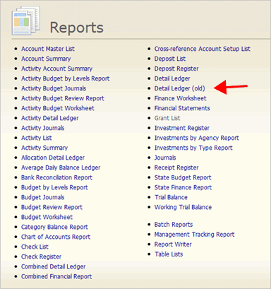 The Detail Ledger in version 2020.08 or later has been updated with new features and tools to make the report easier to use. Because the report is used frequently, we have kept the Detail Ledger from version 2020.05 or earlier in the Reports menu. To launch the report, use the link titled Detail Ledger (Old).