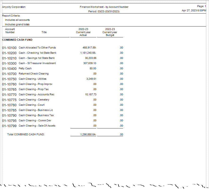 Print a financial worksheet to compare actual amounts and budget amounts. You can choose to include the following account types: