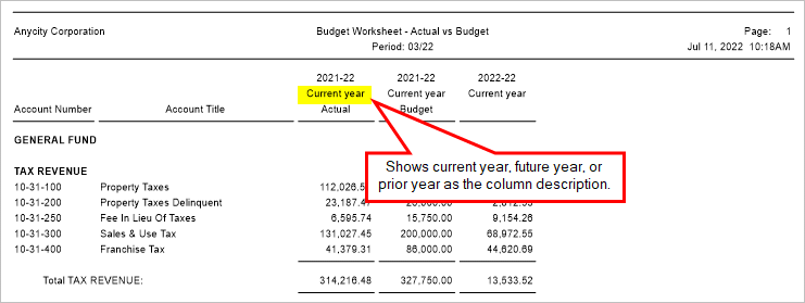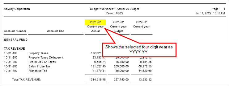 Select the reporting year. You can show the current year, a prior year, or a future year.