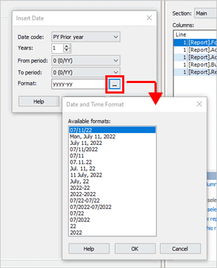 Click the menu button, at the end of the Format box, to select a mask to format the date and time.
