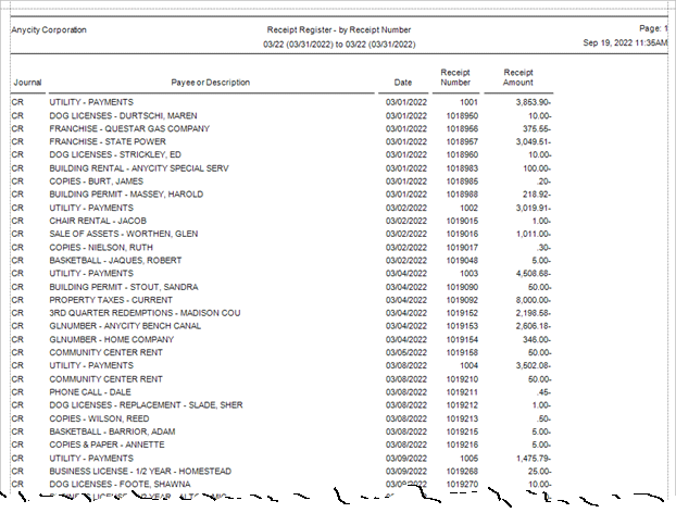 Printing a Receipt Register