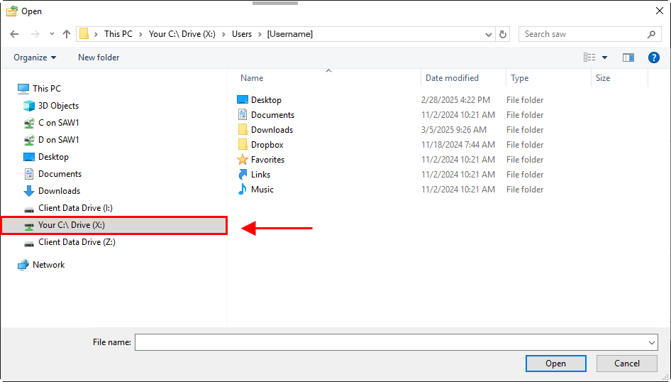 if you're working in Caselle Cloud and you need to find a file on your computer, use \\Your C:\Drive