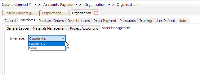 1. Open Connect Asset Management > Organization > Organization > Interfaces tab.