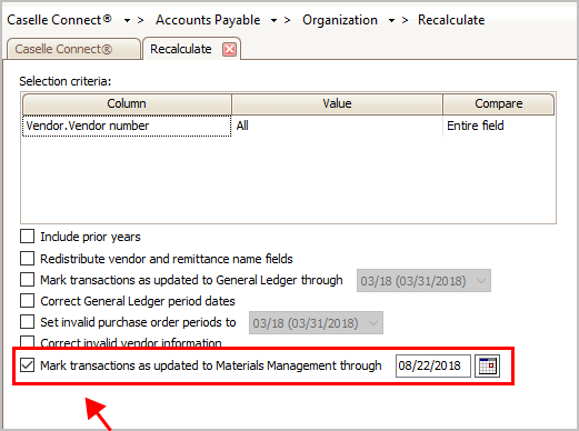 Mark transactions as updated to Materials Management Through MM/DD/YYYY
