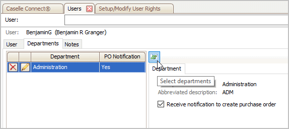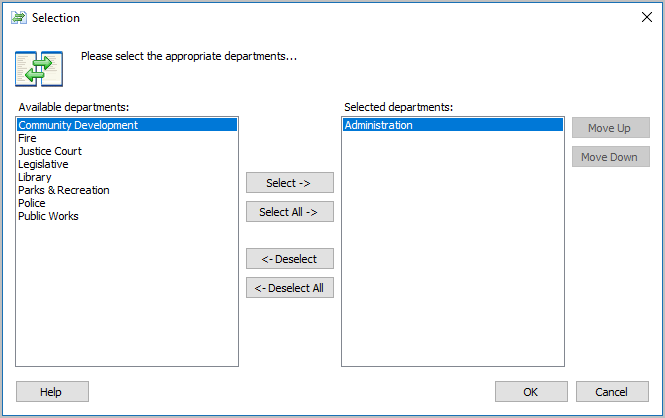 5. Move a department to the Selected Departments list to assign the user to it and then click OK.