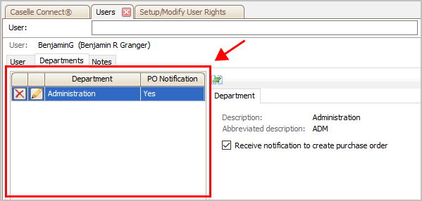 button to view the department properties. You can find out which users
