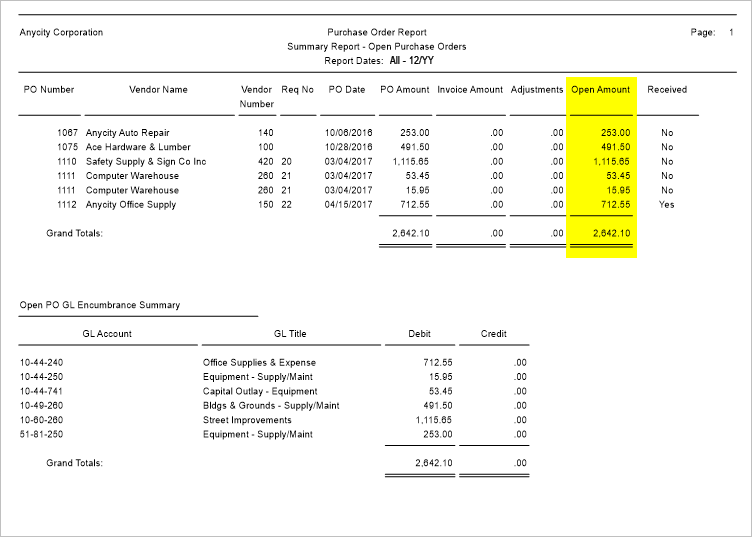 Yes, both Open Purchase Order reports show the same open amounts. You’re good to go.