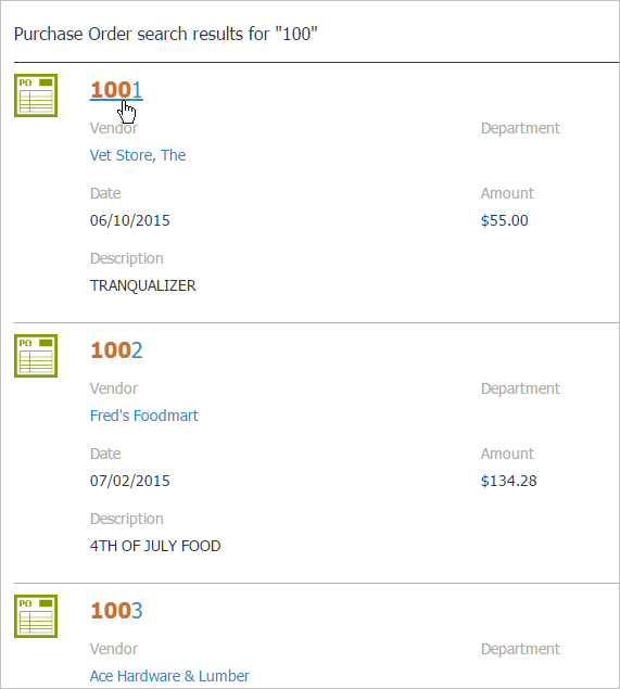 Purchase Order Search Results