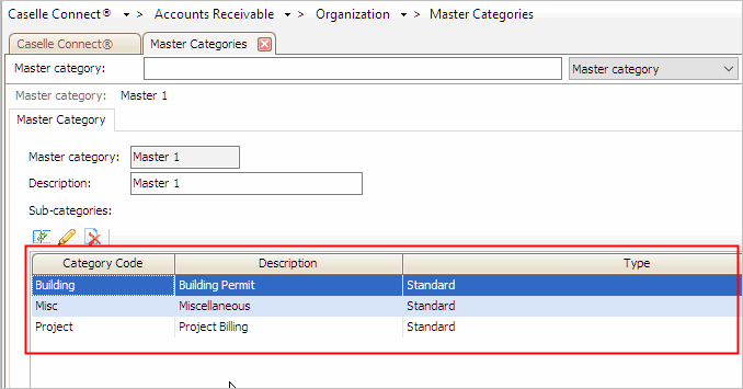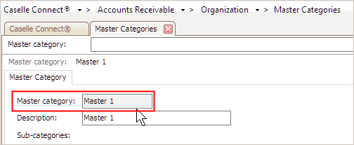 1. Open Connect Accounts Receivable > Organization > Master Categories.