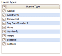 Use the License Types list to select the license types to bill. The list shows the license types that are saved in the License Types table. To add or remove a license type, see How do I add/remove license types?