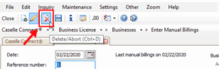 To cancel a manual billing that has not been saved, click Delete/Abort (CTRL+D). Aborting a manual transaction will only work in New mode after a business has been selected.