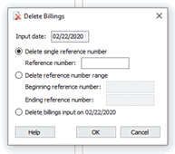 4. Use the Delete Billings window to select an option.