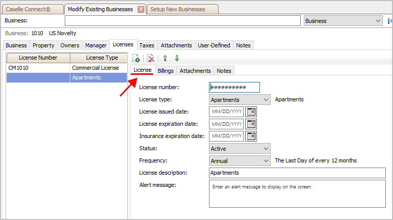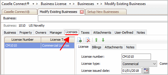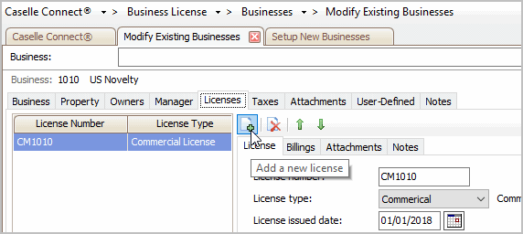 Part of setting up a new business includes adding the licenses the business will use for daily operation.