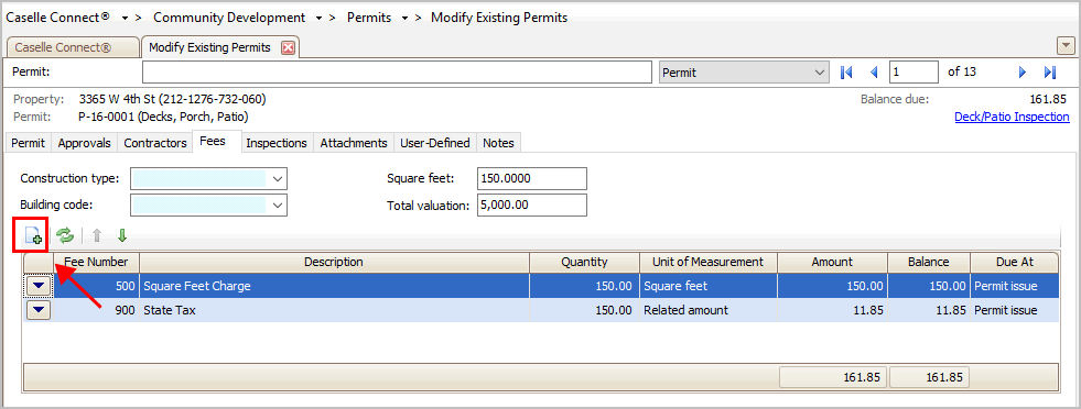 How do I add a fee to a permit?