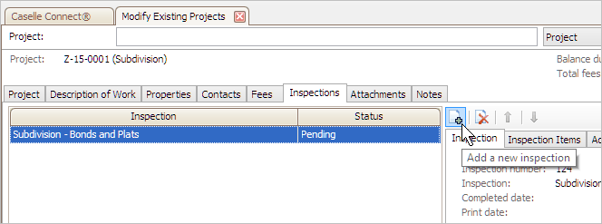 Change the inspections assigned to a project. You can also use Connect Online to add or remove inspections.