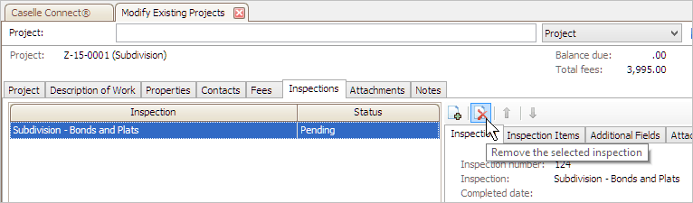 The inspection is deleted from the project.