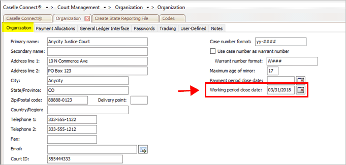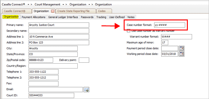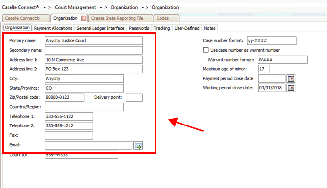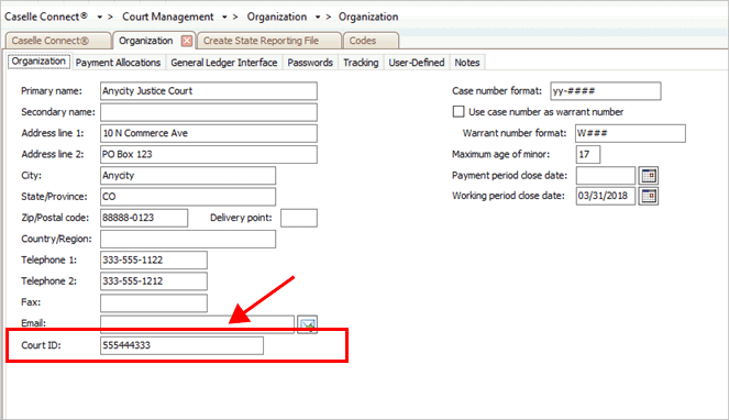 The Court ID is assigned by the governing body. The Court ID identifies your organization and provides a reference number for the payments that you need to send to the government. Example: UT50055, CO22-5555J