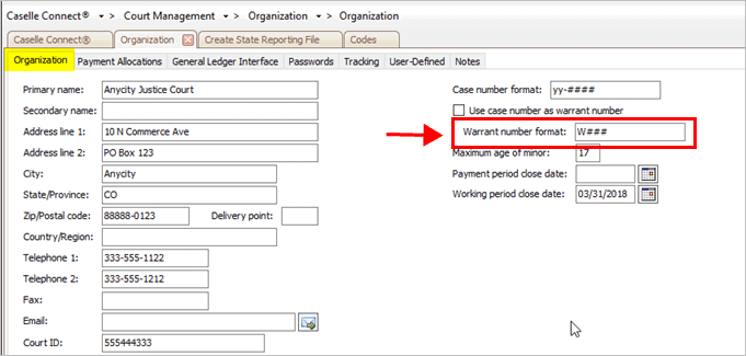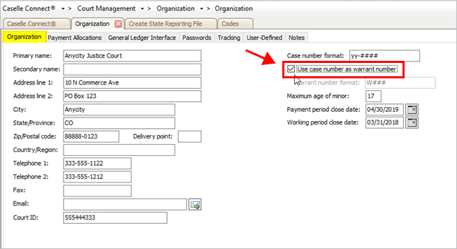 Copy the case number in the field that records the warrant number. When this checkbox is selected, the Warrant Number Format field is not available.
