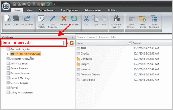 To search a drawer, click on it to select it and then enter the search value in the search bar. Watch how to search a drawer (1m22s),