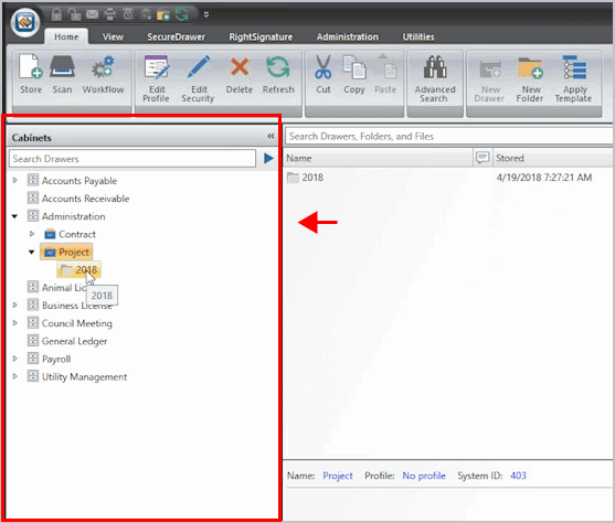 2. Select a drawer from the navigation pane.