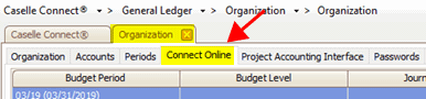 1. Open Connect General Ledger > Organization > Organization.