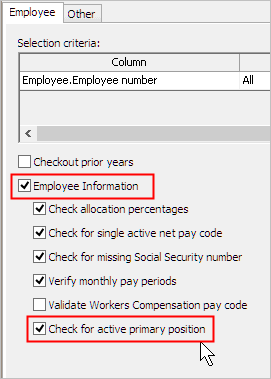 3. Click to select the checkbox titled Check for Active Primary Position.
