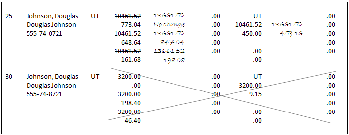 2. Manually combine the totals for each W-2 field for this employee and make a note of the new totals on the W-2 conversion report.