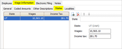 6. On the Wage Information tab > States subtab, enter the new totals for the combined amounts into each of the W-2 boxes.