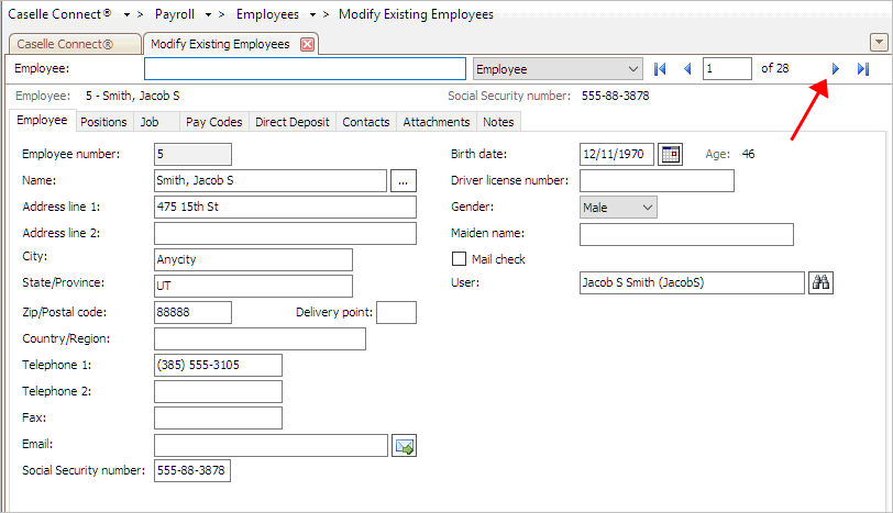 No, the employee’s Social Security number is NOT correct. Click on the Social Security Number field to correct it.