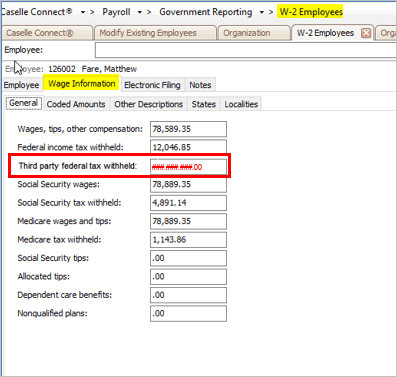 Third Party Federal Tax Withheld in W-2 Employees (Government Reporting))