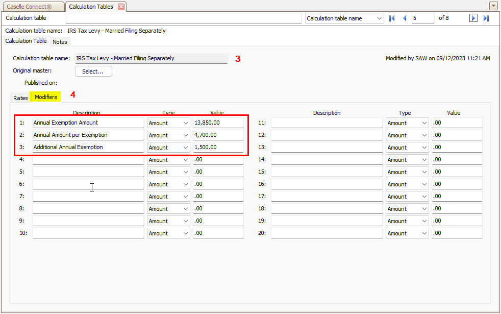 3. In the Calculation Table Name box, enter IRS Tax Levy - Single.