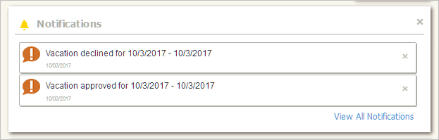 You will receive a notification when your leave request status changes. When you submit a leave request, you'll receive a notification when the leave request is submitted, approved, or rejected. The notification will show the approved leave dates.