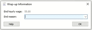 Use the Wrap-up Information window to enter the reason for terminating the part-time position, and then click OK. The Warp-up Information window displays on part-time positions, for example, seasonal employees. The wrap-up information is included on the History tab.