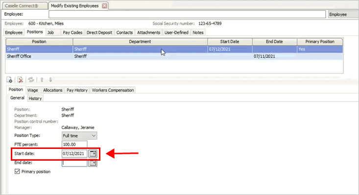 Select the full-time position from the grid on the Positions tab.