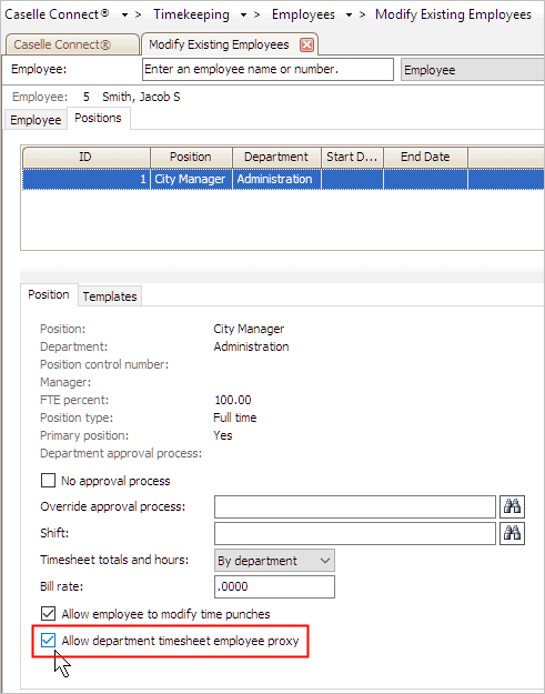5. Click to select the checkbox titled Allow Department Timesheet Employee Proxy.