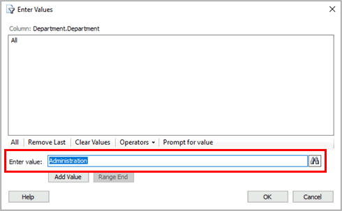 2. Find Department.Department in the Selection Criteria and double-click ALL.