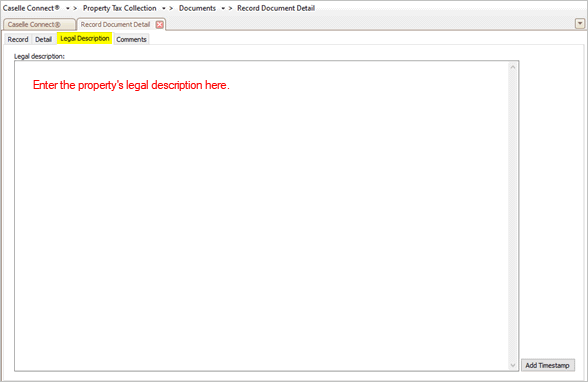 4. Use the Legal Description tab to enter the property's legal description.