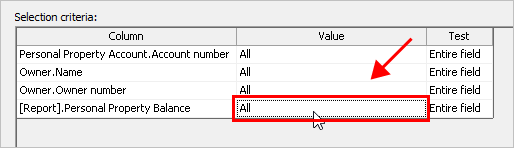[Report].Personal property balance in the Selection Criteria