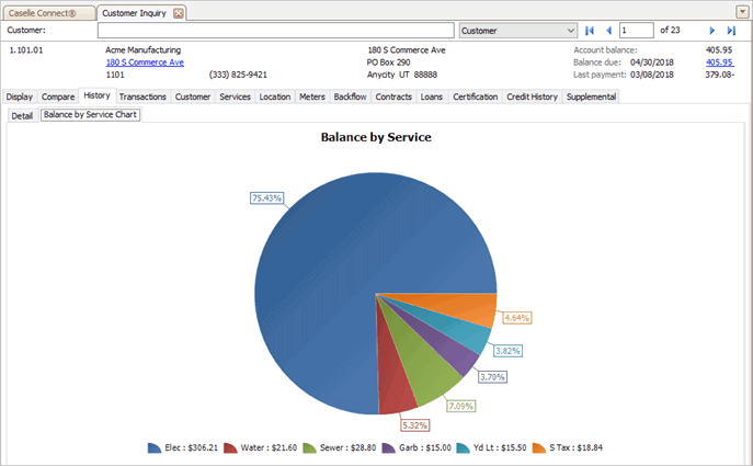 View the customer balances by service as a pie chart.